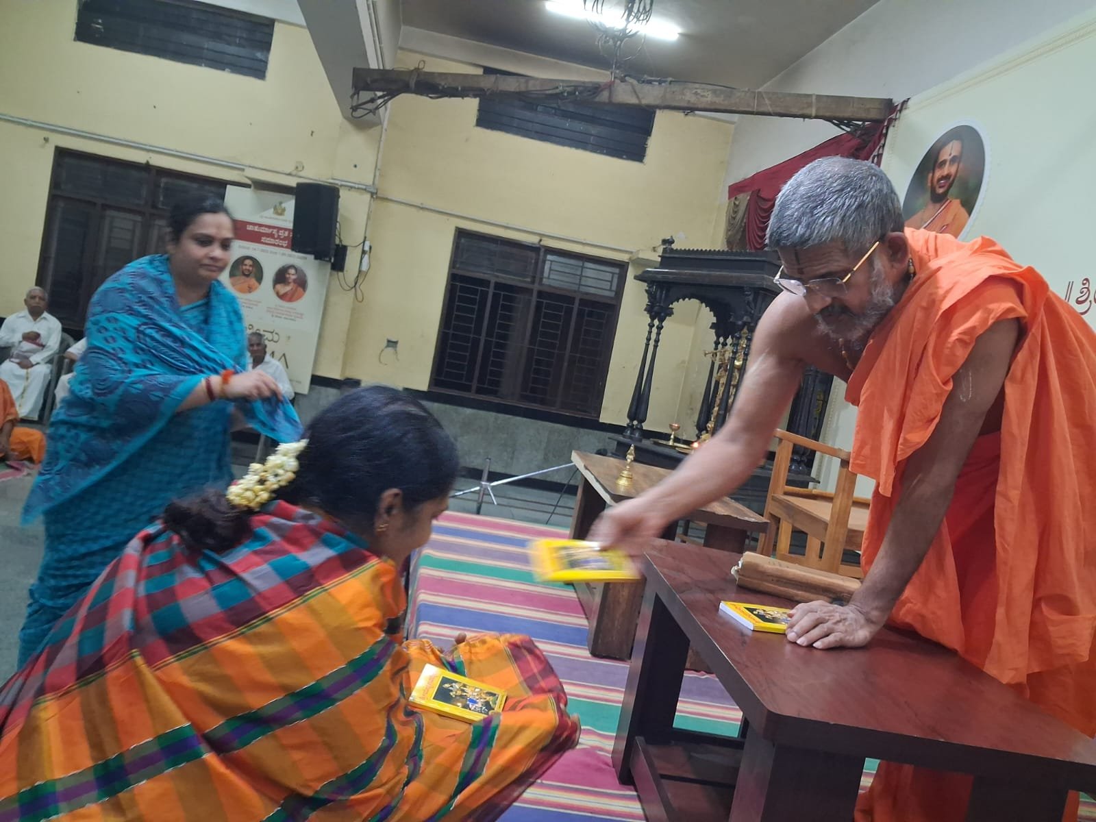 At this occasion Srimati Ramya Srinath said:- "We are grateful recipients of being Blessed with 2000 books of Sri BhagavadGeetha as a reference learning text for rural students of Akshara Prabhavam , from Purnaprajna Samshodhana Mandiram, with the Divine Blessings of Pejawara Mathadheesharu and kind initiative of Sriyutha Dr. Veeranarayanacharya Pandurangi Ji . We would like to express our sincere gratitude and Pranams to all those who have contributed towards this initiative . THANK YOU ! Pranams"