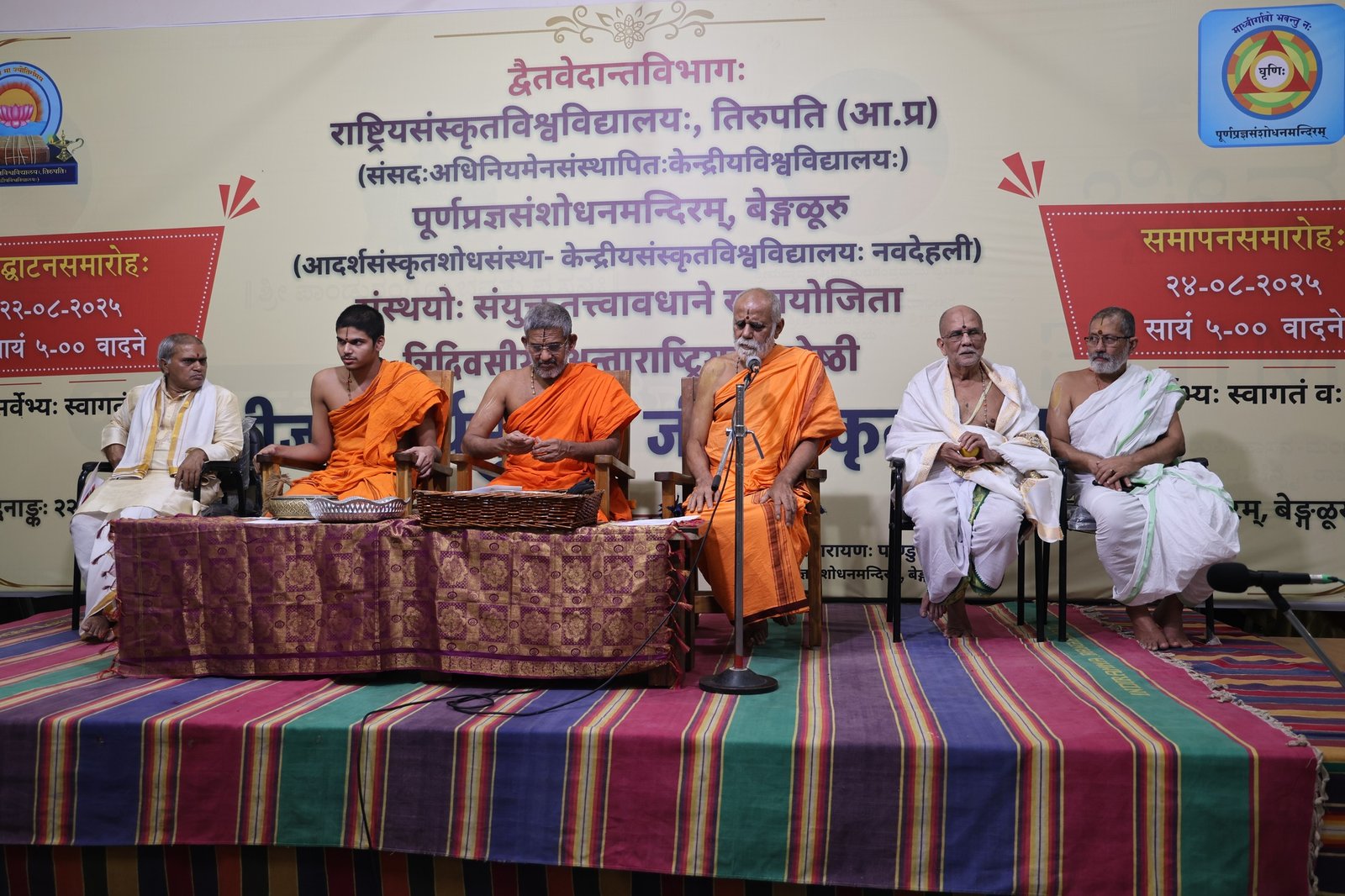 Day 3 of the Three-Day International Seminar on the Life and Literature of Shri Jayatirtha Muni - Two Academic Sessions, followed by a Panel Meeting of Directors of Research Centers, and concluding with the Valedictory Session.