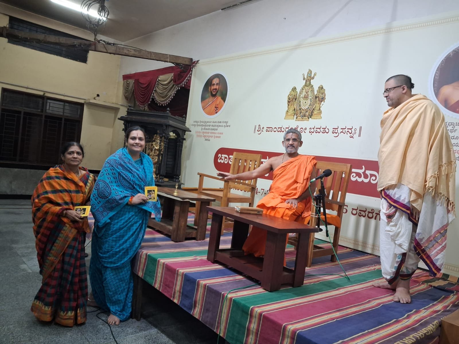 At this occasion Srimati Ramya Srinath said:- "We are grateful recipients of being Blessed with 2000 books of Sri BhagavadGeetha as a reference learning text for rural students of Akshara Prabhavam , from Purnaprajna Samshodhana Mandiram, with the Divine Blessings of Pejawara Mathadheesharu and kind initiative of Sriyutha Dr. Veeranarayanacharya Pandurangi Ji . We would like to express our sincere gratitude and Pranams to all those who have contributed towards this initiative . THANK YOU ! Pranams"