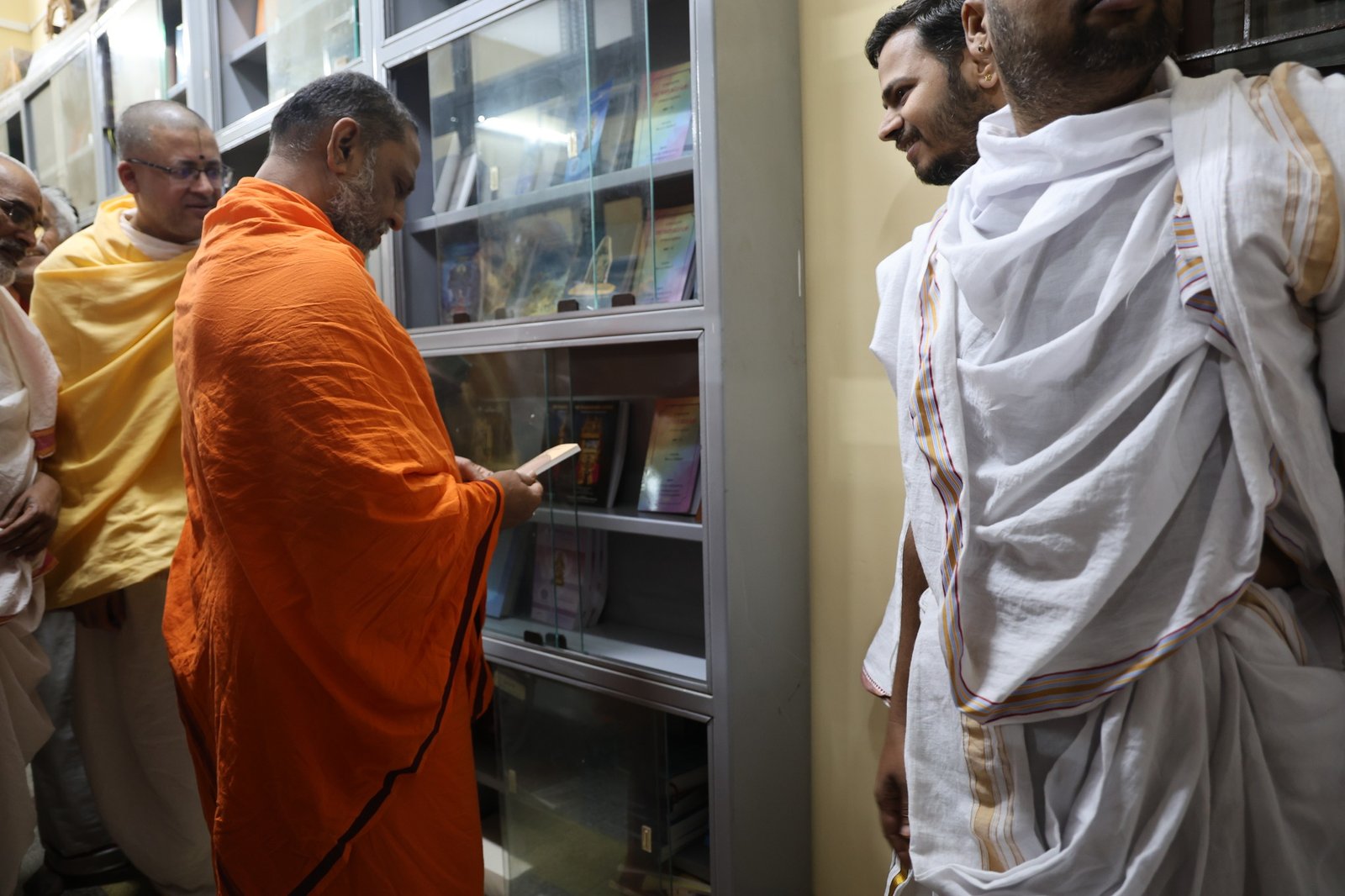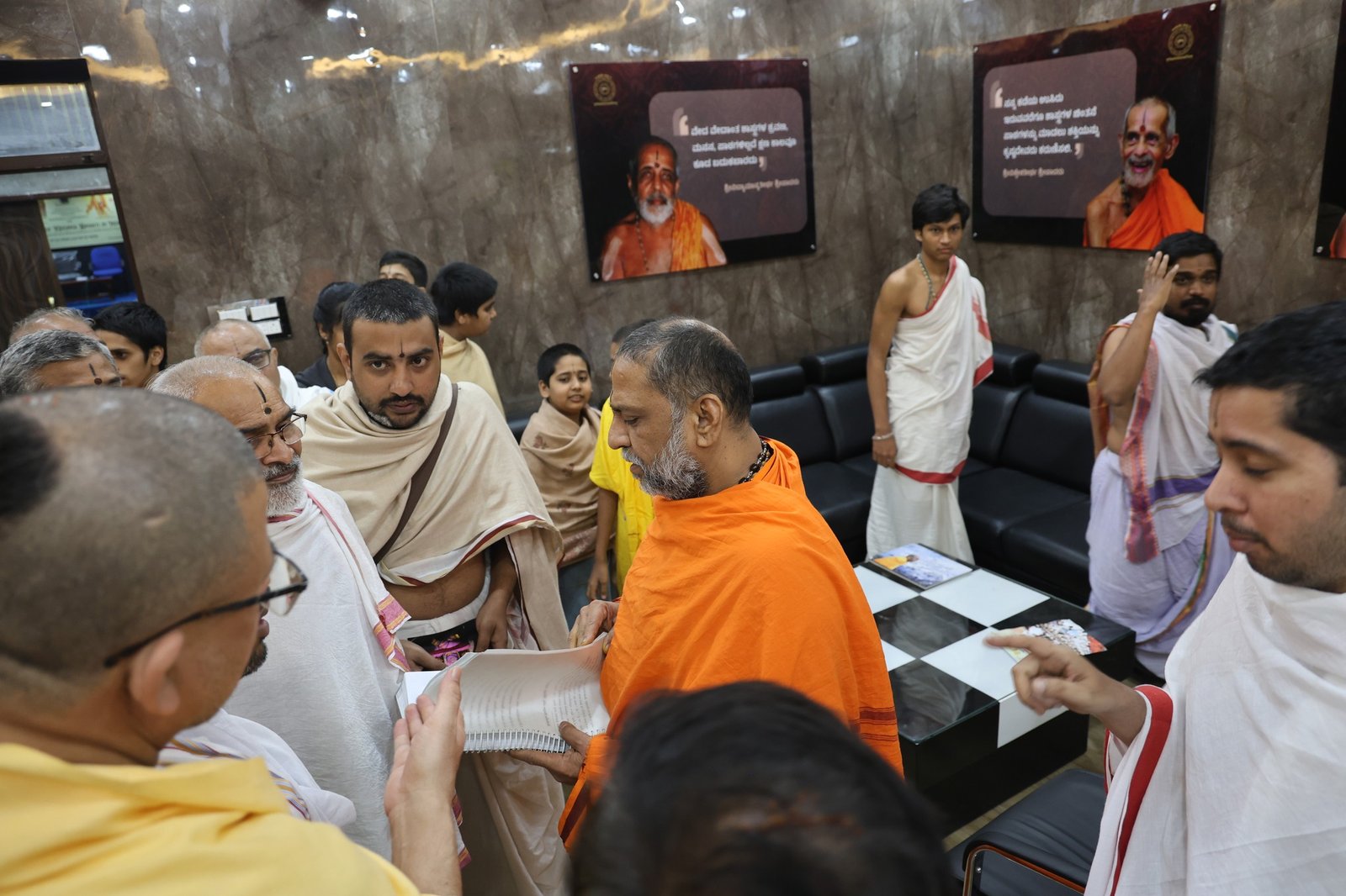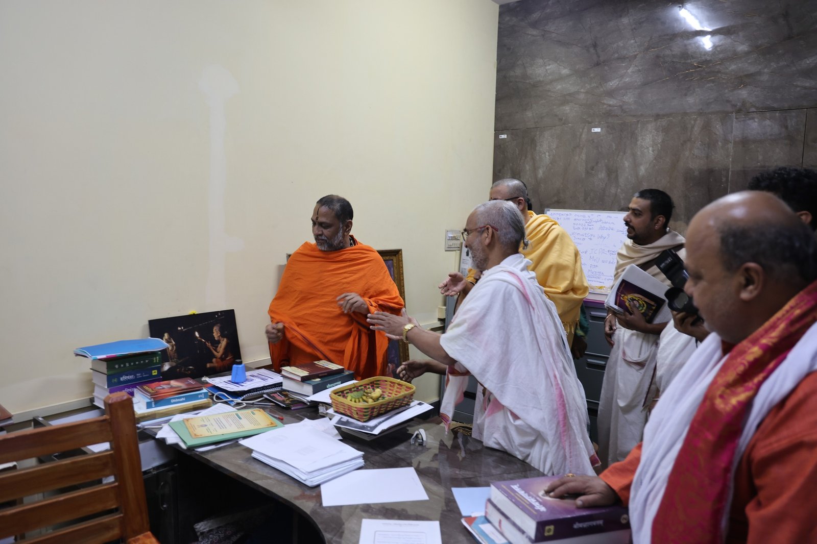 Shri 1008 Shri Subudendra Tirtha Swamiji of Mantralaya Raghavendra Swamy Mutt Visited Poornaprajna Samshodhana Mandiram and Matrushri Kamalamma Pustaka Malige and had detailed Discussions about the ongoing research works and blessed all staff.